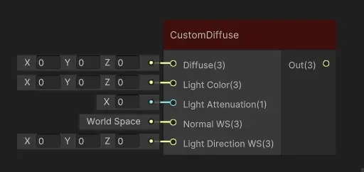 CustomDiffuse节点的核心价值在于其可定制性。与标准的Lambert或Oren-Nayar漫反射模型不同,这个节点不强制使用特定的光照算法,而是将光照计算的各个要素作为输入端口开放给用户。这种设计理念使得开发者能够根据项目特定的视觉风格或性能要求,实现从简单的N·L点积计算到复杂的自定义BRDF模型。