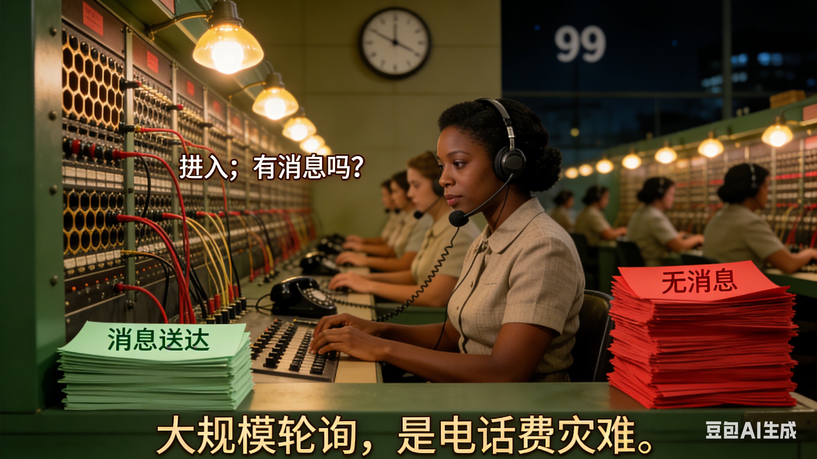 你只是想让服务器在有消息时通知你,结果服务器 99% 的时间在接空电话。
