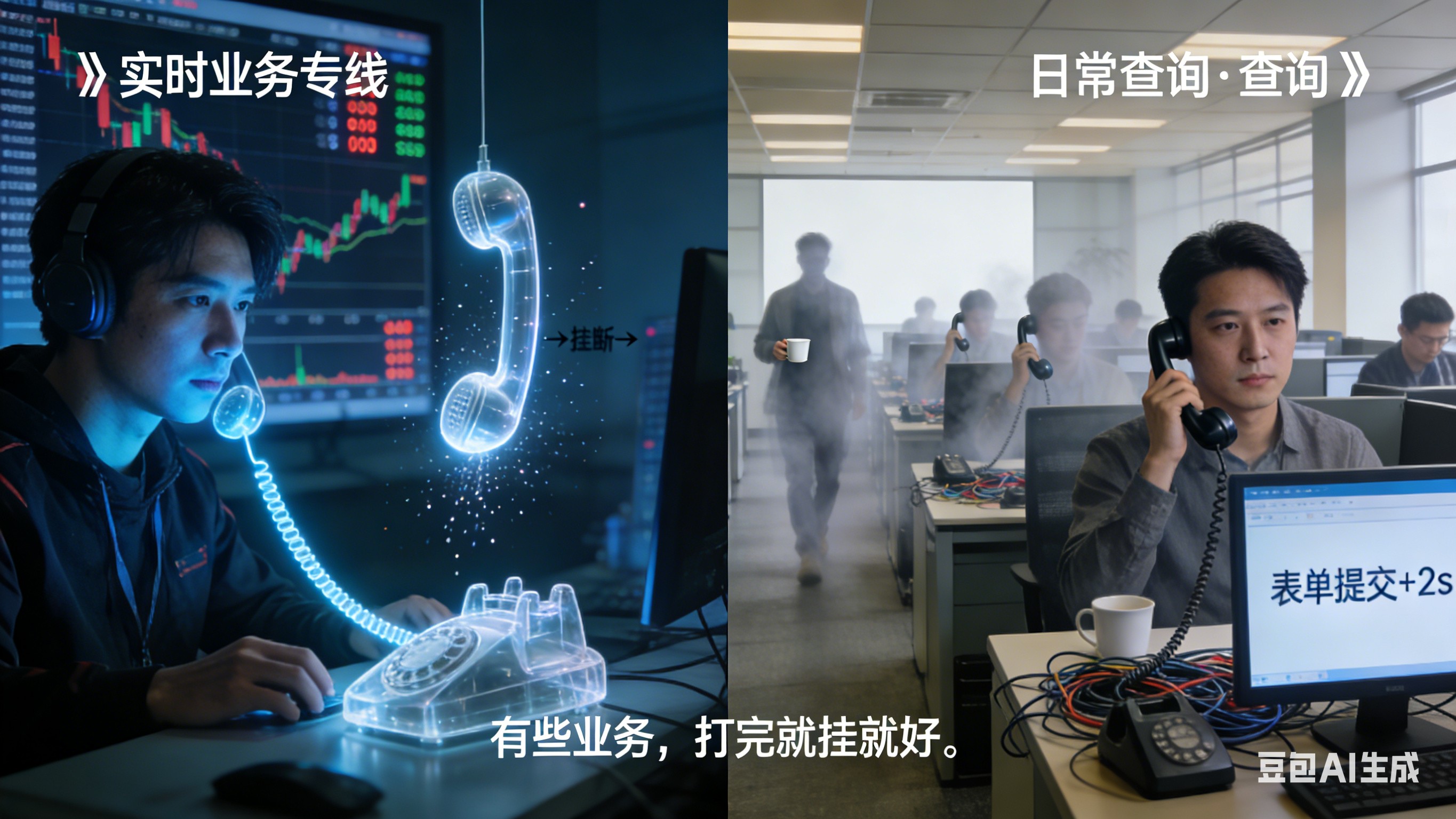 所以,绝大多数"查东西、填表单"的业务,用"说完就挂"的电话就够了。