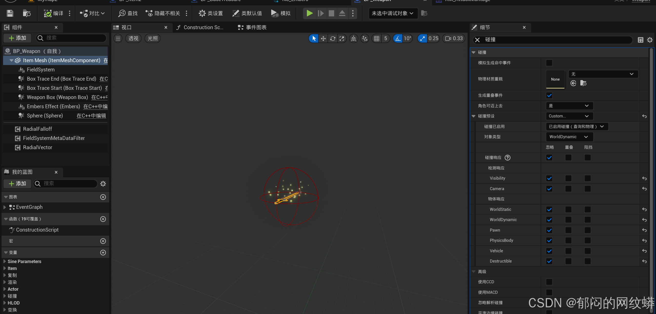 - 回到编辑器,新建对应蓝图,在里面设置网络体、声音。