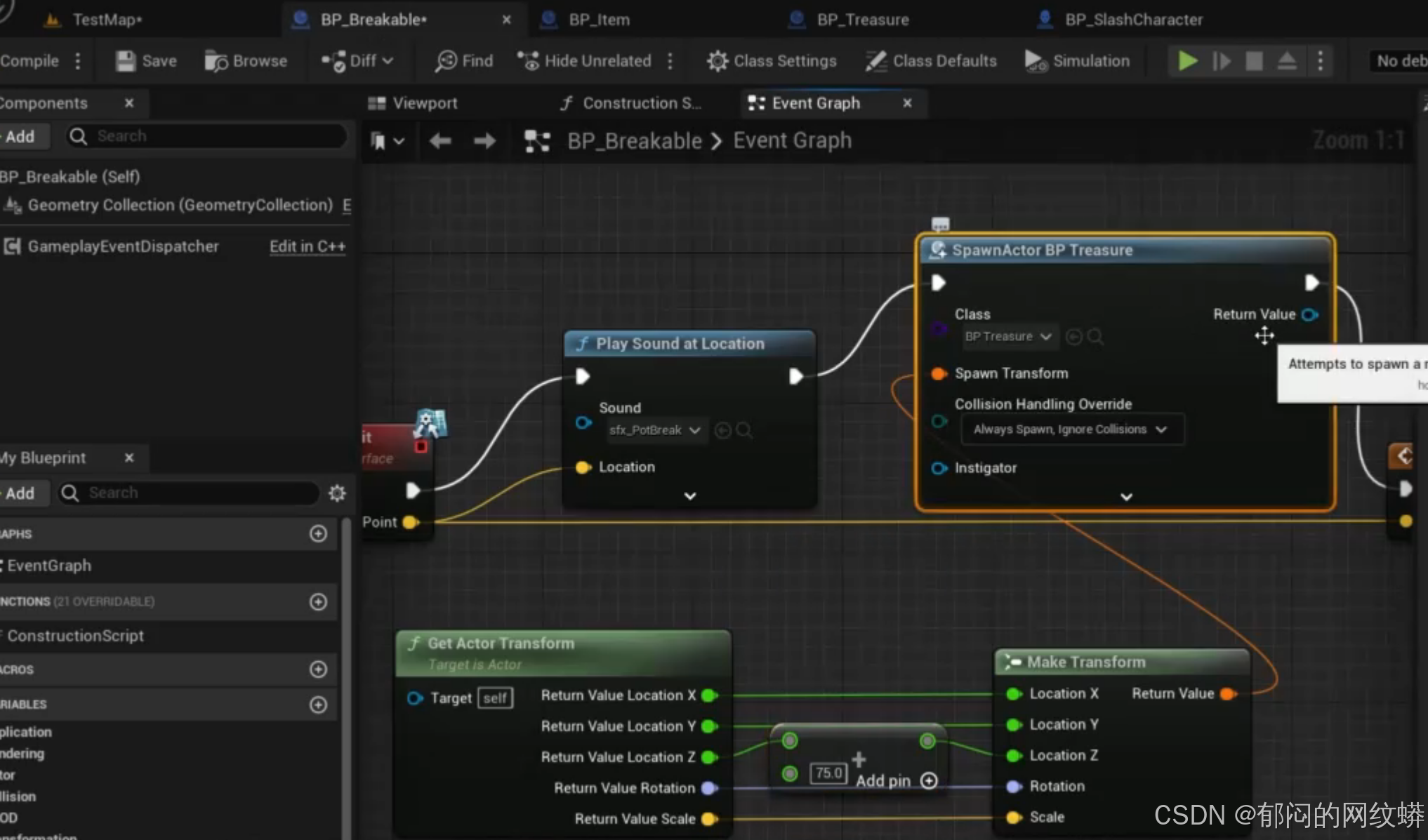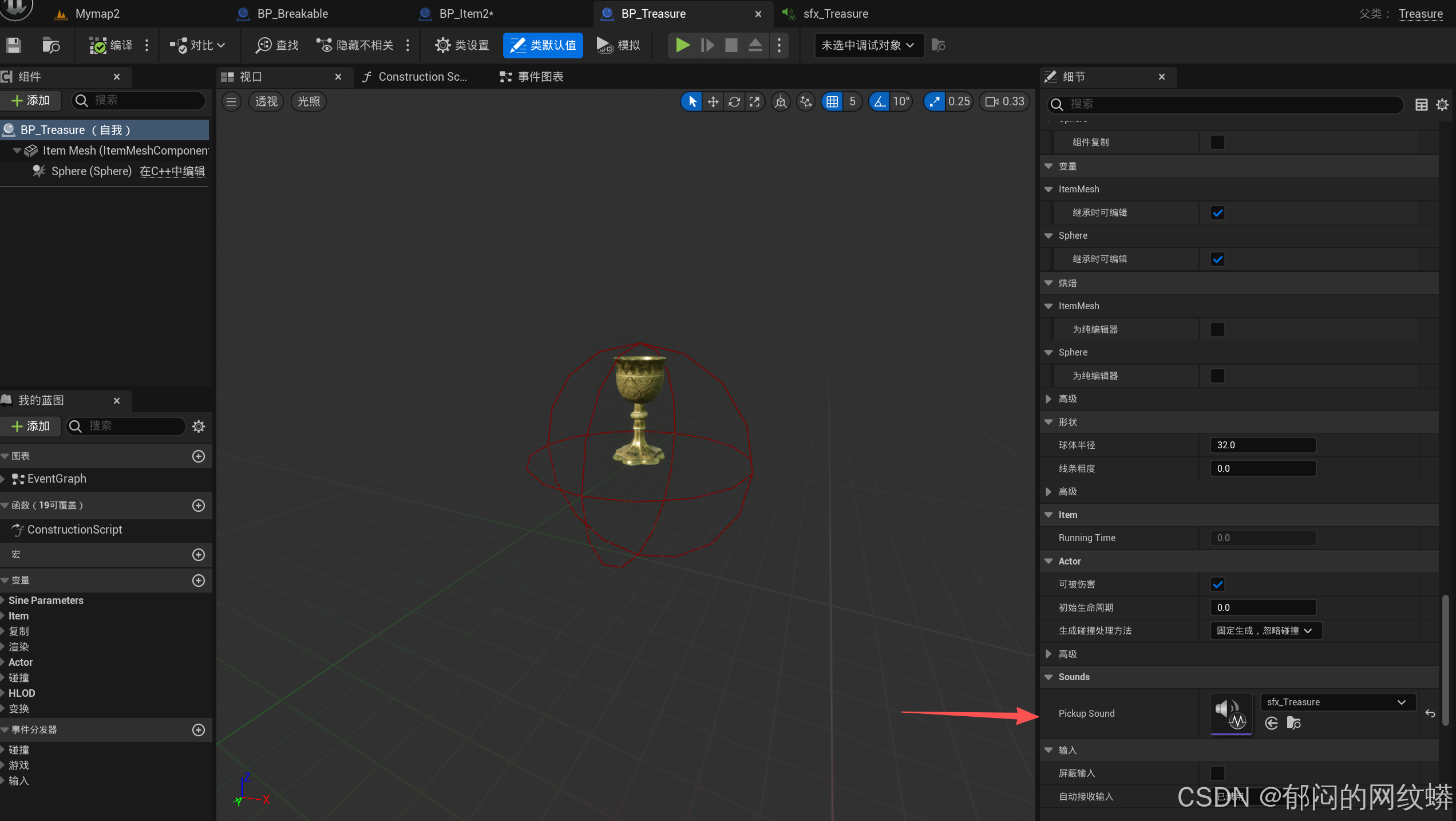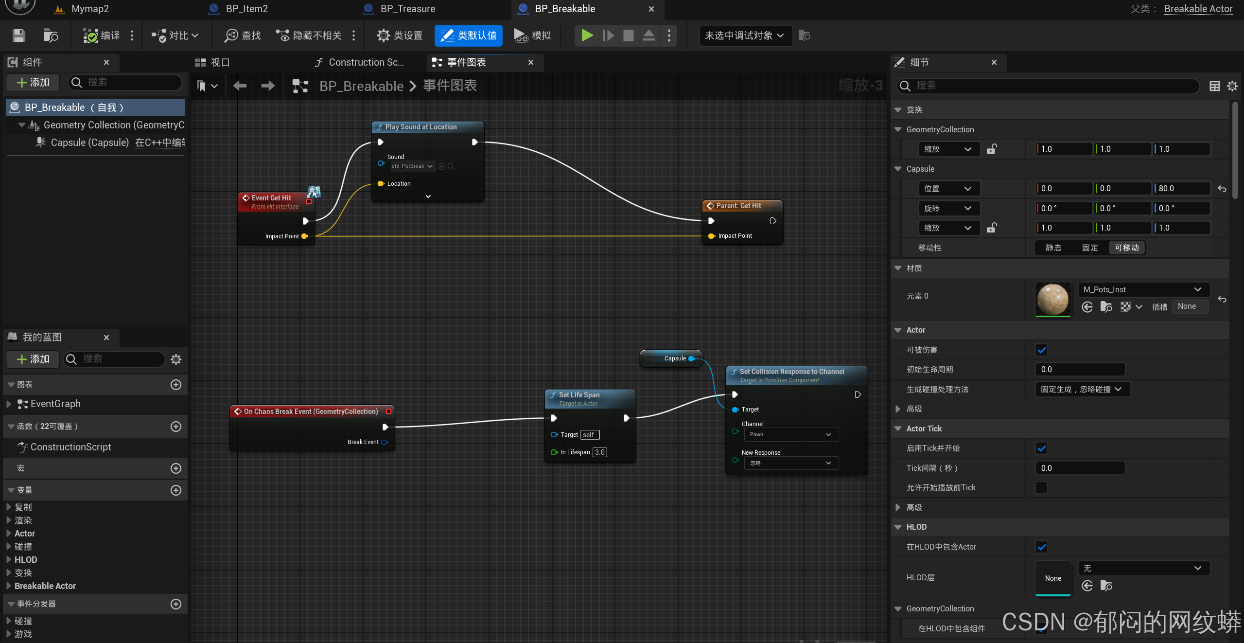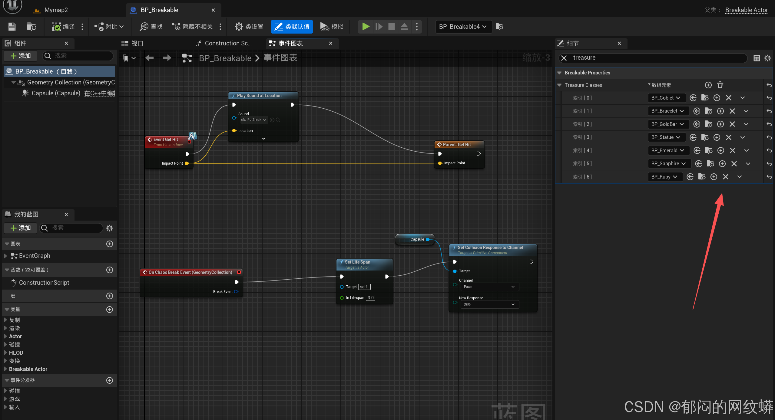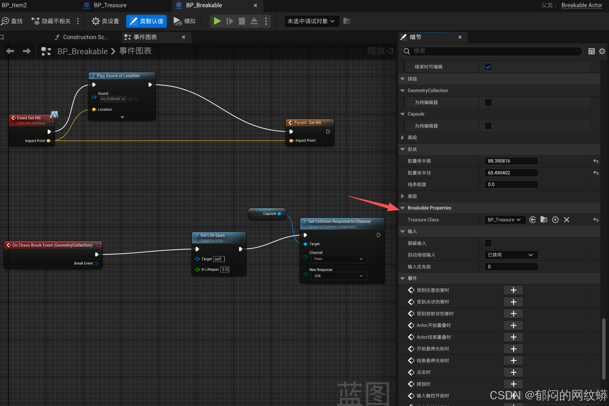 - 在可破坏蓝图里面绘制,里面可以生成宝物。
