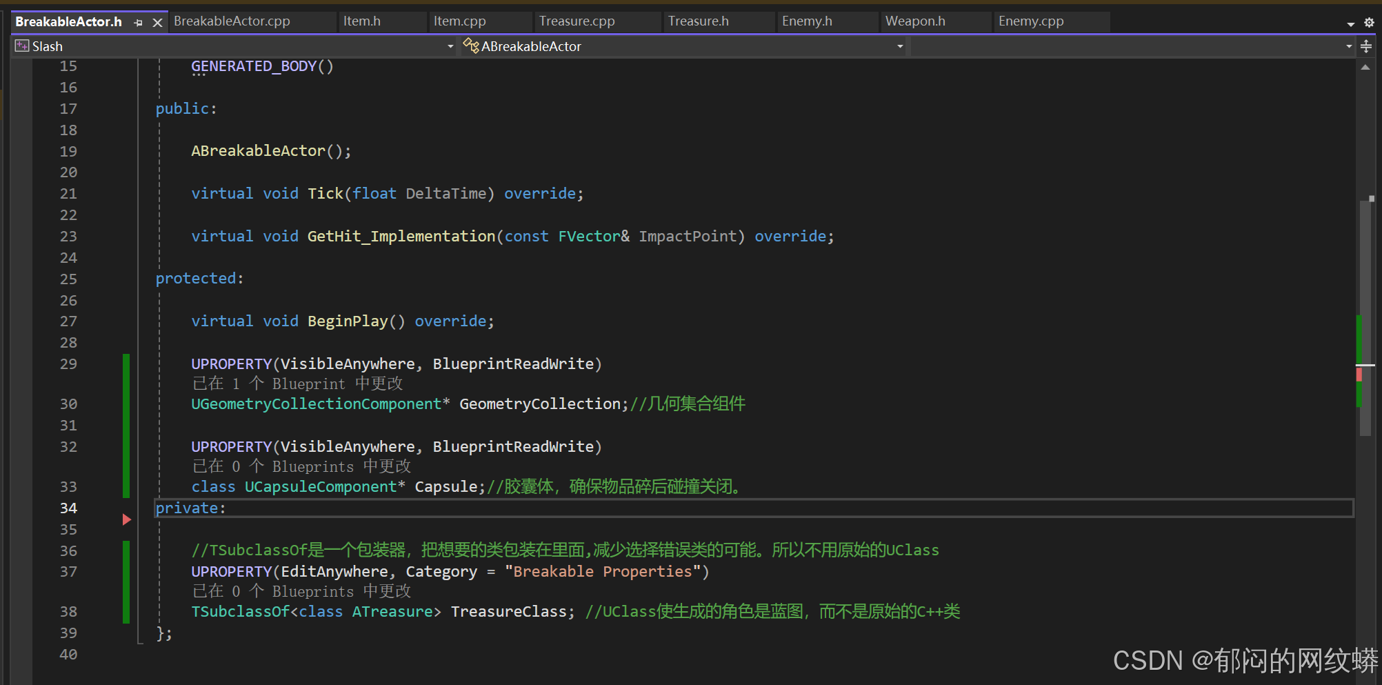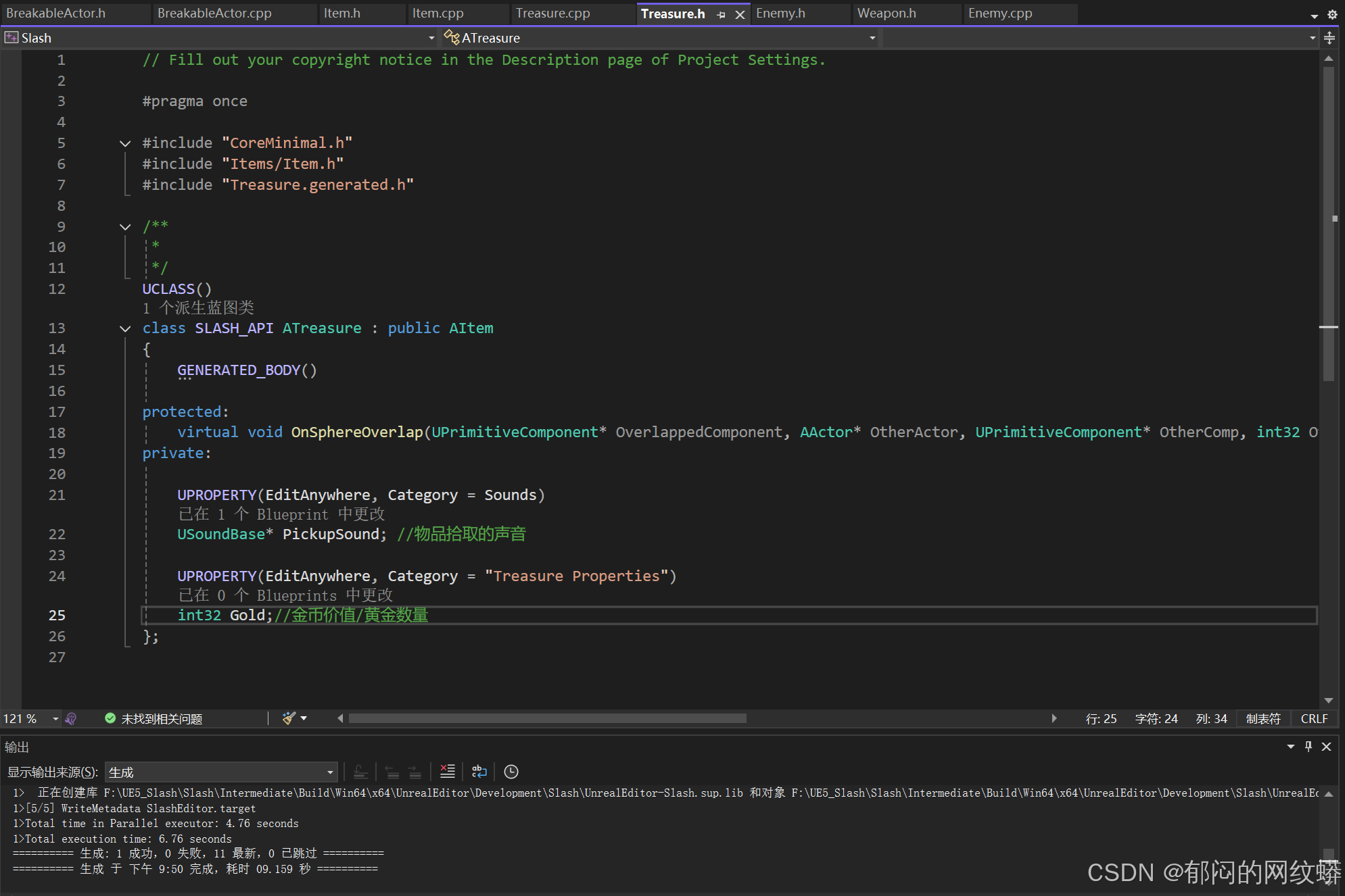 - 在C++里增加金币数量来定义掉落物的价值。在宝藏的蓝图里面设置
