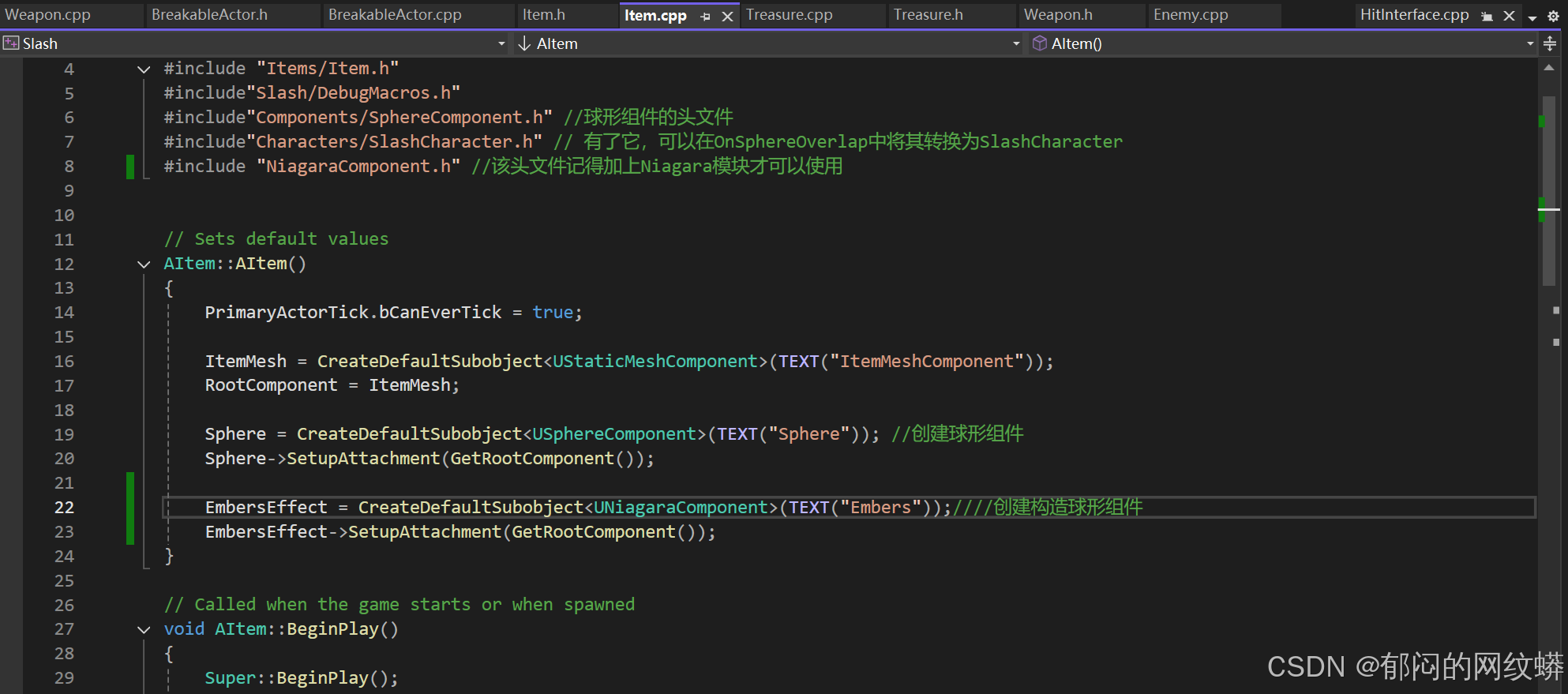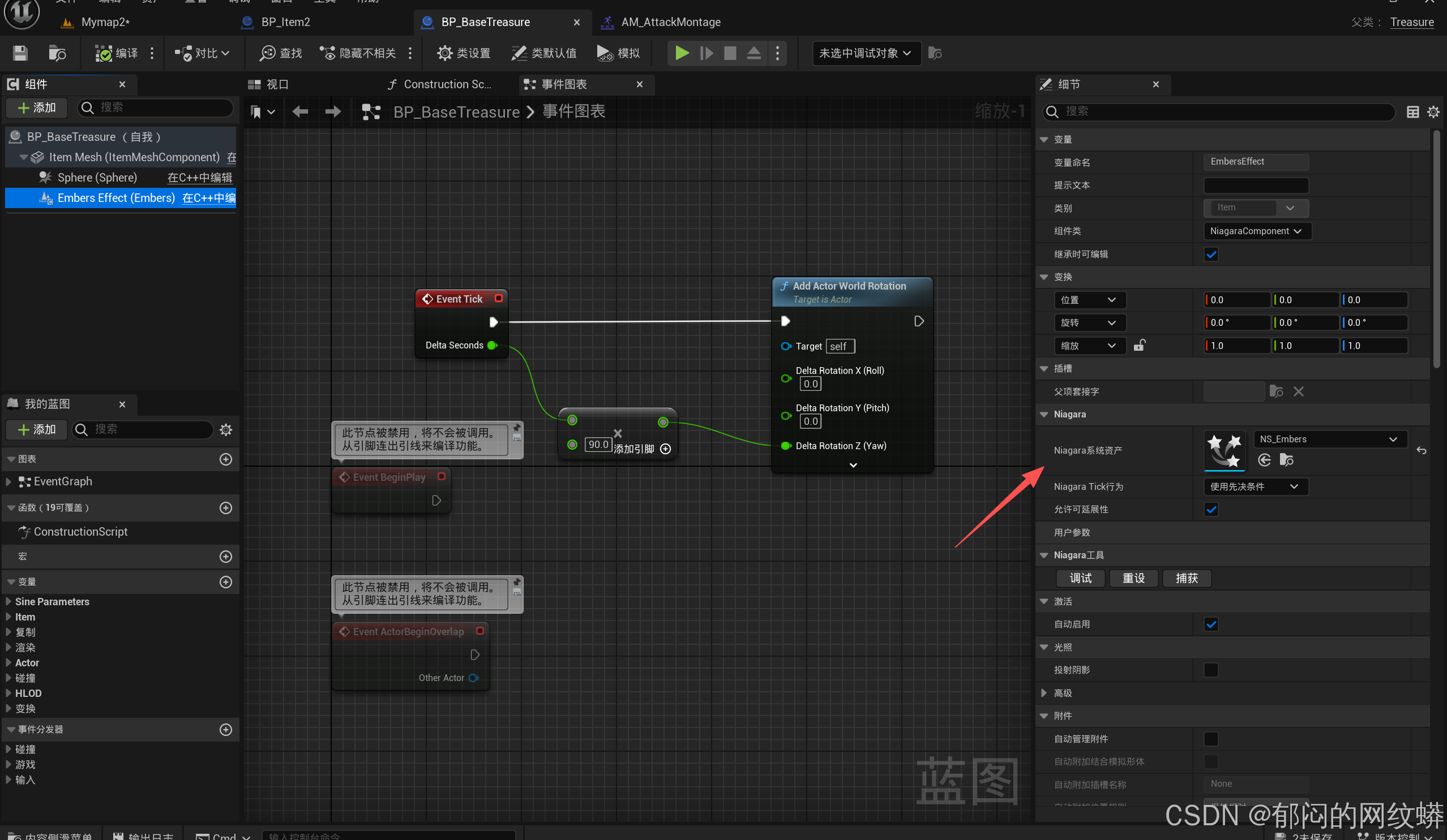 - 在C++里添加Niagara组件,在物品文件构造它,