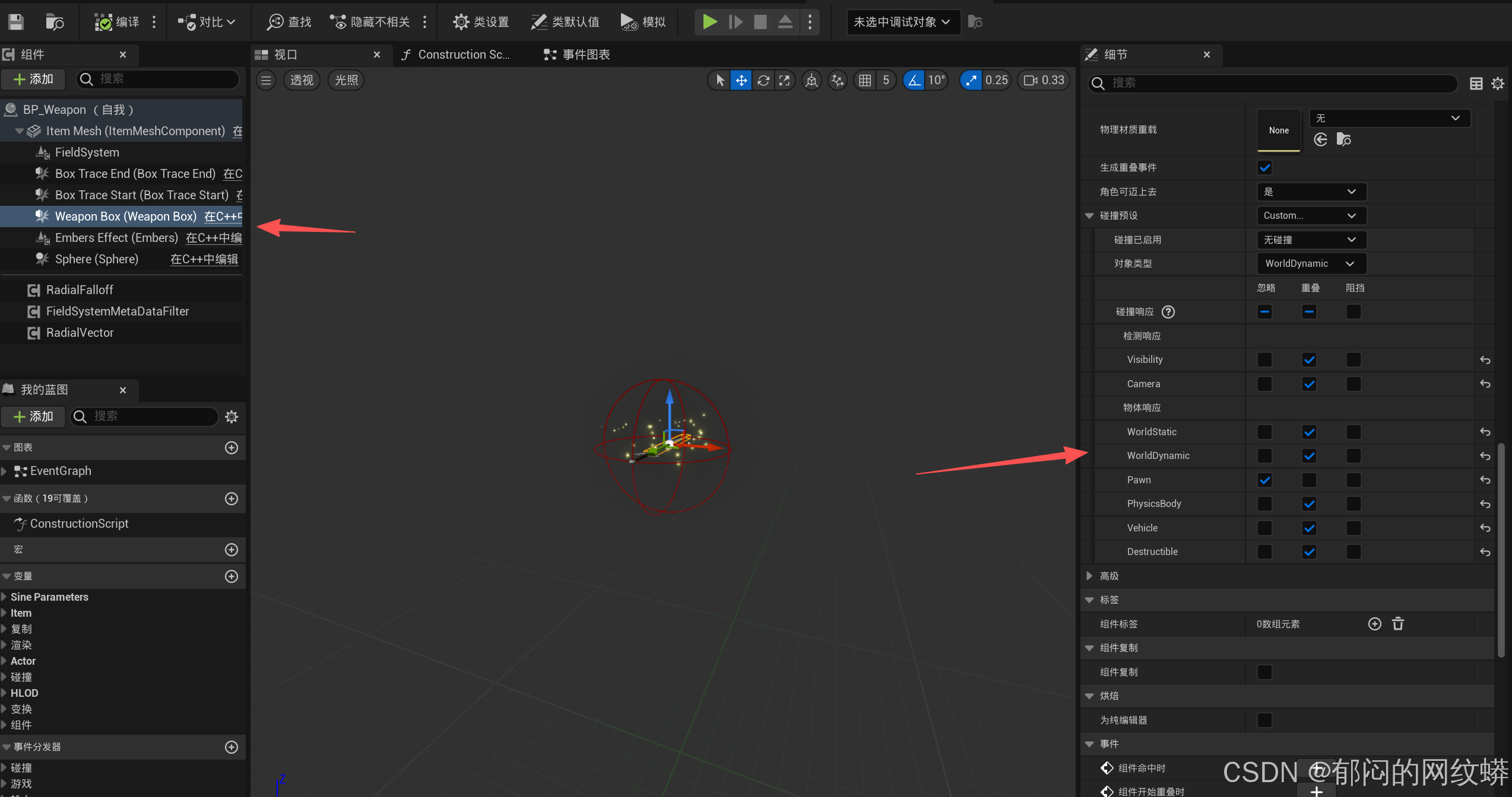 - 如果出现人踩到武器上面,注意检测碰撞(物理与查询)是否启用。参考设置