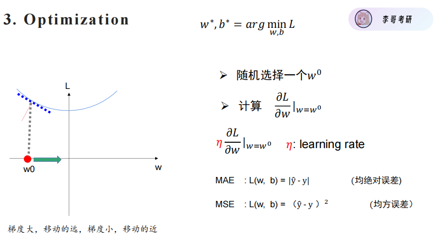当w_0处的导数小于0时:往右走