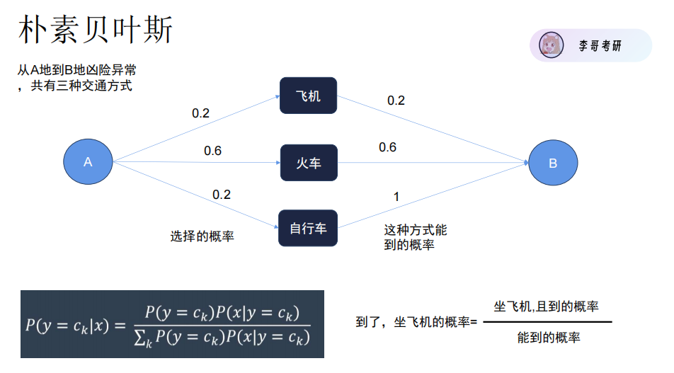 y = c_k:表示"交通方式是飞机(或火车、自行车)"