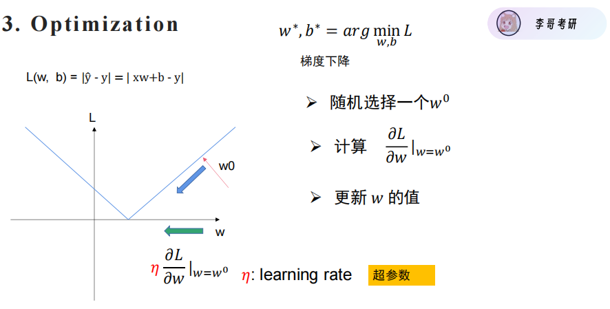 当w_0处的导数大于0时:往左走