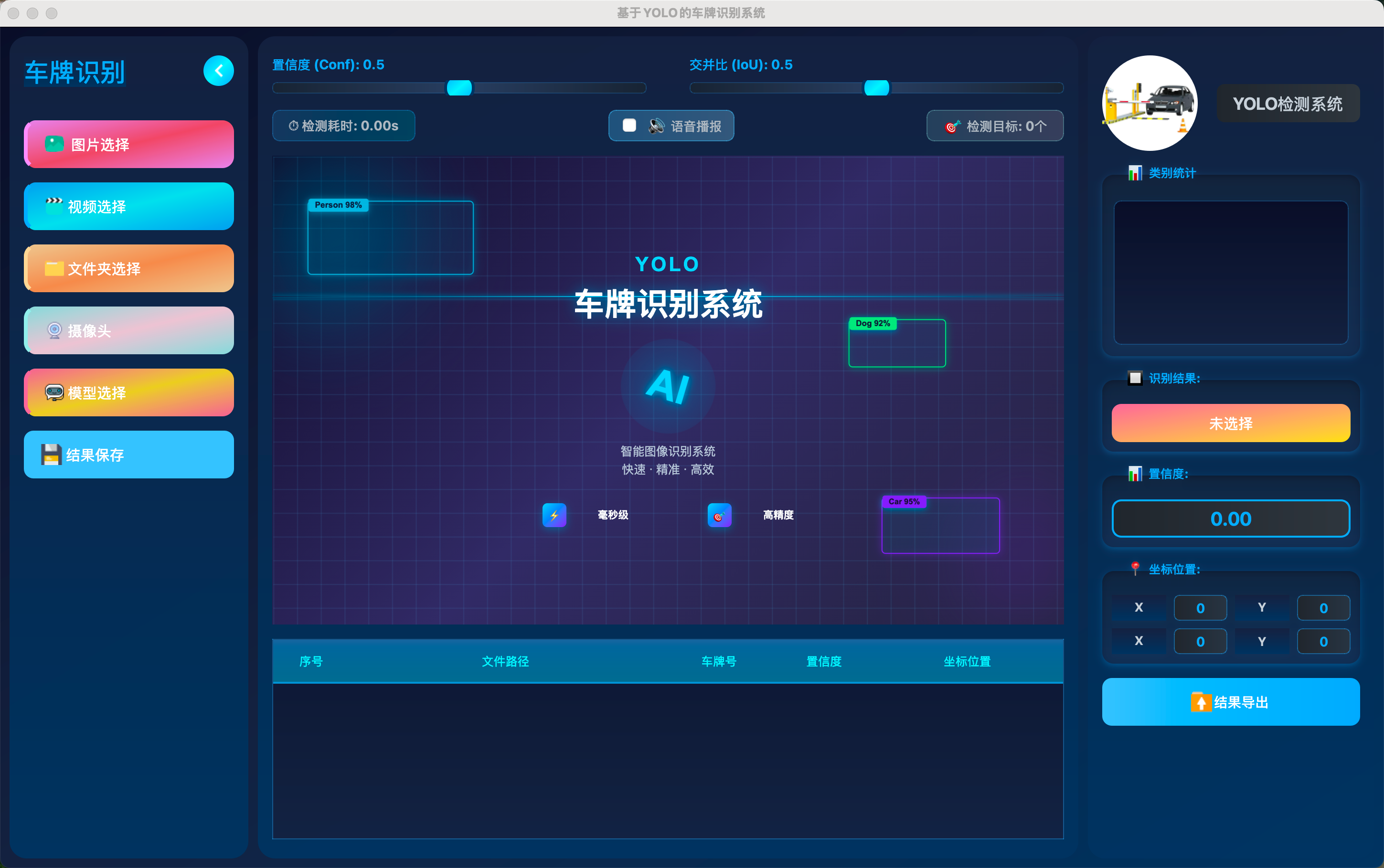 接下来,我们就从主界面功能、车牌检测与识别效果演示、模型切换与结果保存导出,到训练脚本的使用,为大家完整展示这套系统的实现与应用价值。
