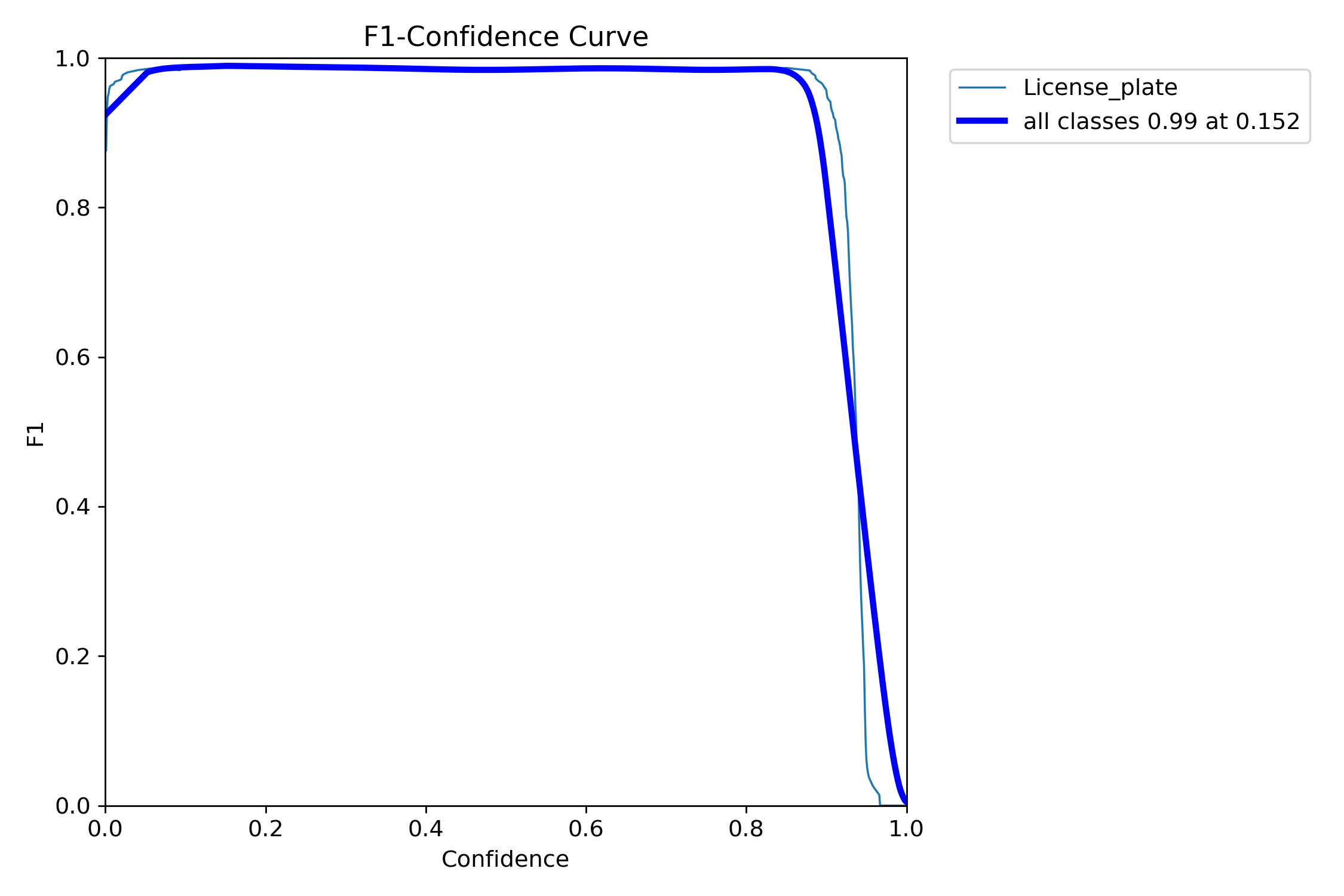 当置信度为0.152时,所有类别的综合F1值达到了0.99(蓝色曲线)。