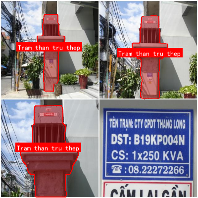 Electric Equiments Labeling数据集是一个专注于电力设备标注的数据集,包含612张图像,所有对象均以YOLOv8格式进行标注。该数据集涵盖了六类电力设备:'May 1 pha'、'Tram gian'、'Tram nen'、'Tram phong'、'Tram than tru thep'和'Tram tru ghep -Tram ngoi-'。图像经过预处理,包括自动像素方向调整(带EXIF方向信息剥离)和拉伸至640x64分辨率,但未应用图像增强技术。数据集通过qunshankj平台于2025年4月18日导出,采用CC BY 4.0许可协议授权。该数据集的图像主要展示城市环境中的电线杆及其附属电力设备,包括变压器、绝缘子等,部分图像包含越南语标识信息,如设备名称、编号和参数等。数据集按训练、验证和测试集进行划分,适用于电力设备自动检测与识别算法的开发与评估,特别是在智能电网监测和电力设施维护领域具有应用价值。