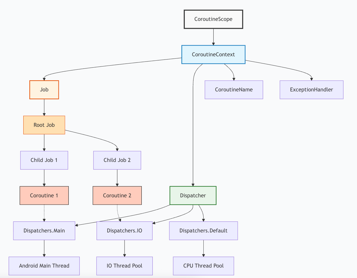 CoroutineScope, CoroutineContext, Job, Dispatcher之间的关系