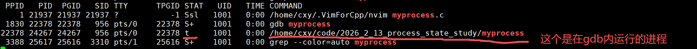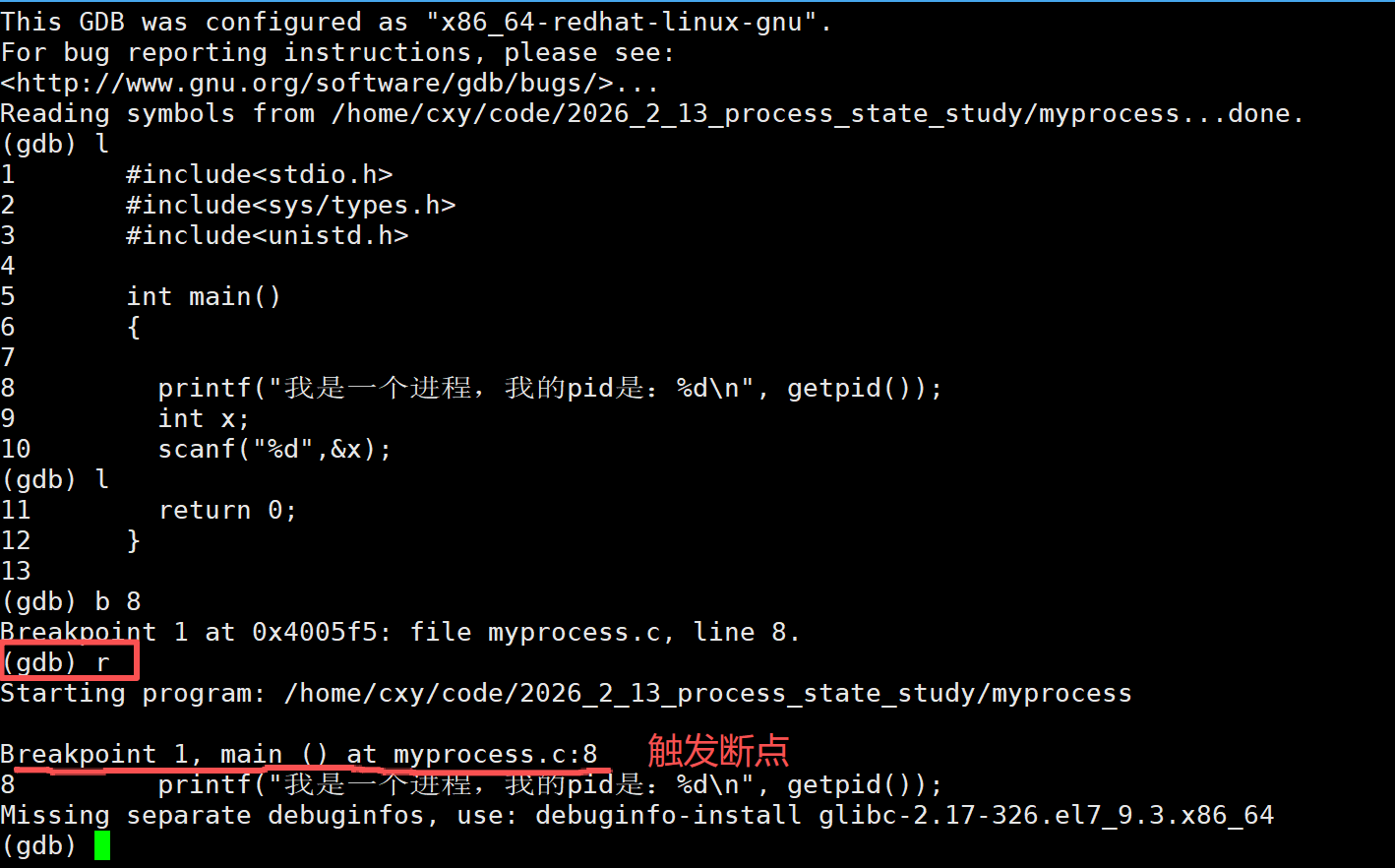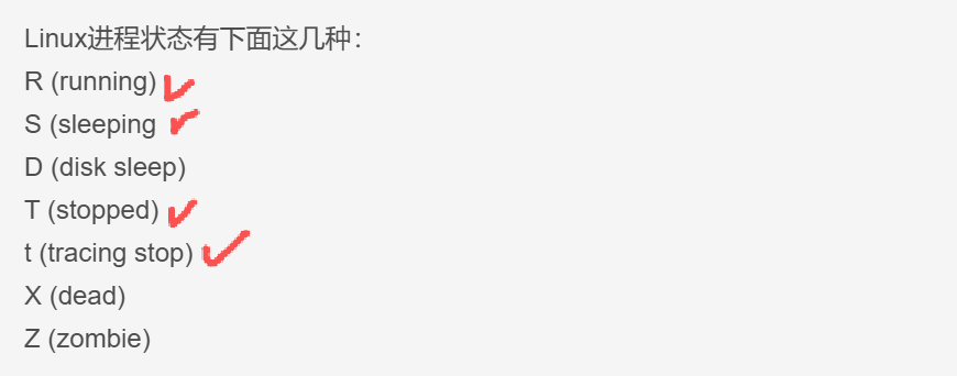 此时进程就处于 t 状态,t 被称为被追踪时暂停状态。为什么被叫做被追踪时暂停状态,因为是触发断点时进程状态才会变为t状态,相当于追踪到了该断点。