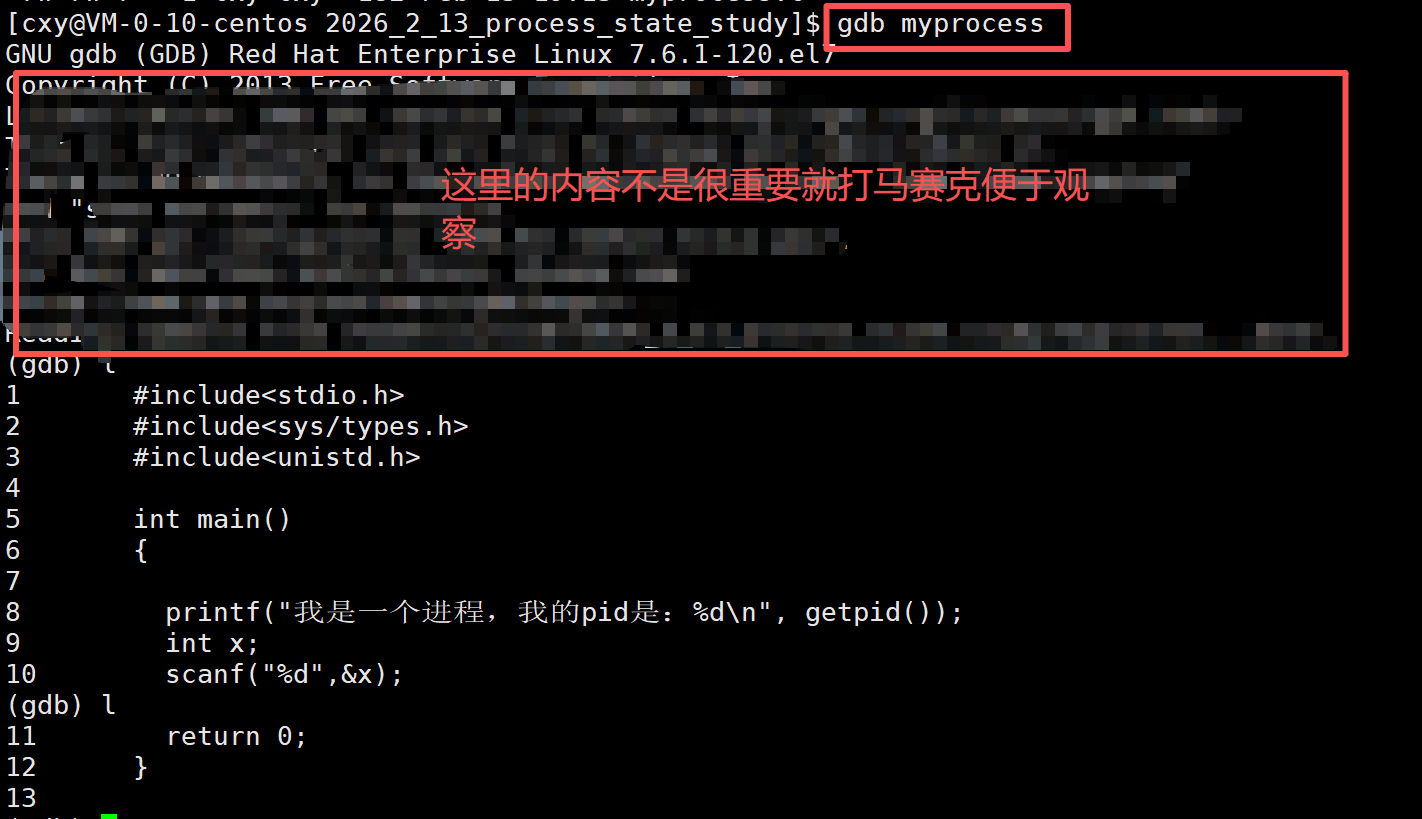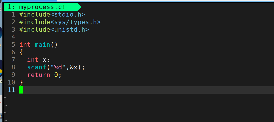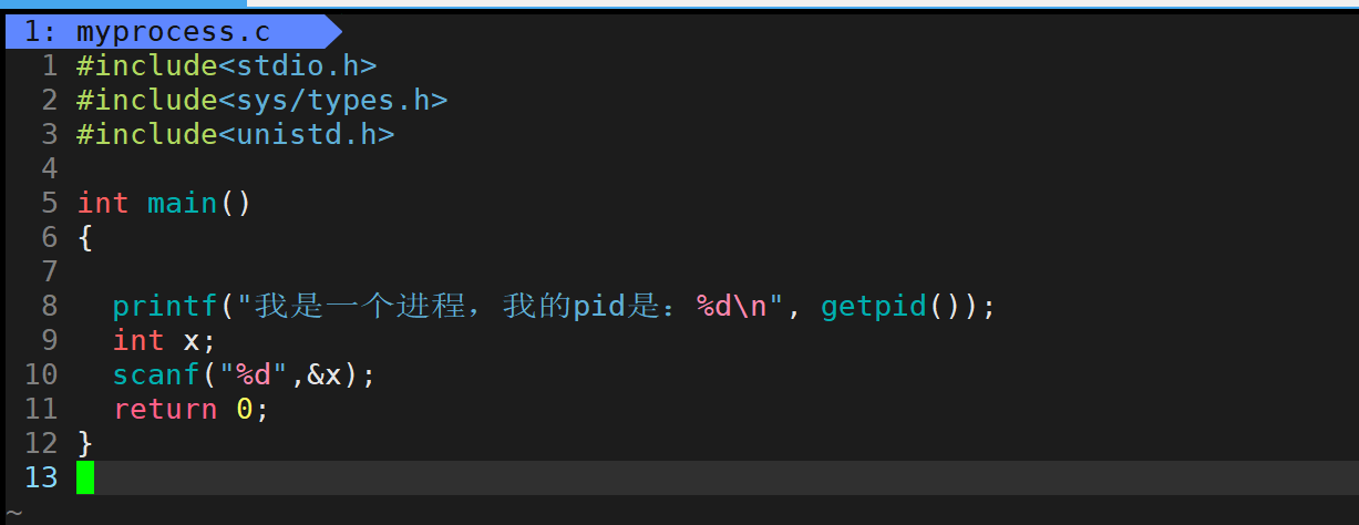 当前代码运行到scanf时,就会等待用户输入。该进程就会被阻塞。此时进程处于S状态