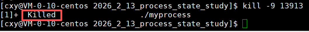 现在用键盘按下Ctrl 和 z,观察进程运行的情况和状态