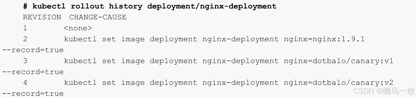 使用kubectl rollout history查看更新历史: