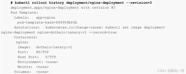 查看Deployment某次更新的详细信息,使用--revision指定某次更新的