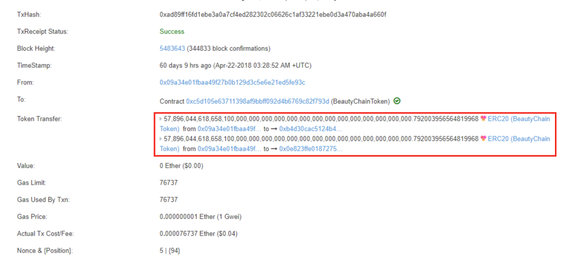 - 代币无限增发:攻击者成功铸造了远超总供应量的 BEC(据公开数据,单次攻击就生成了约 5 × 10⁵⁸ 个 BEC)。