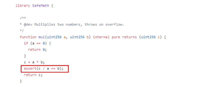 OpenZeppelin 提供的 SafeMath 库对所有算术运算进行溢出检查: