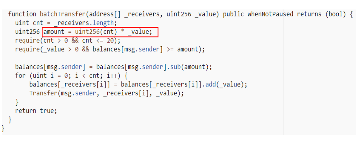 batchTransfer) - [3. 攻击原理:整数溢出漏洞](#3. 攻击原理:整数溢出漏洞)