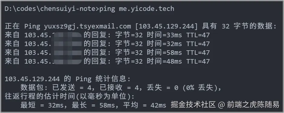 如上图,比如我的个人网站https://me.yicode.tech,真实IP地址是150.158开头的IP地址。