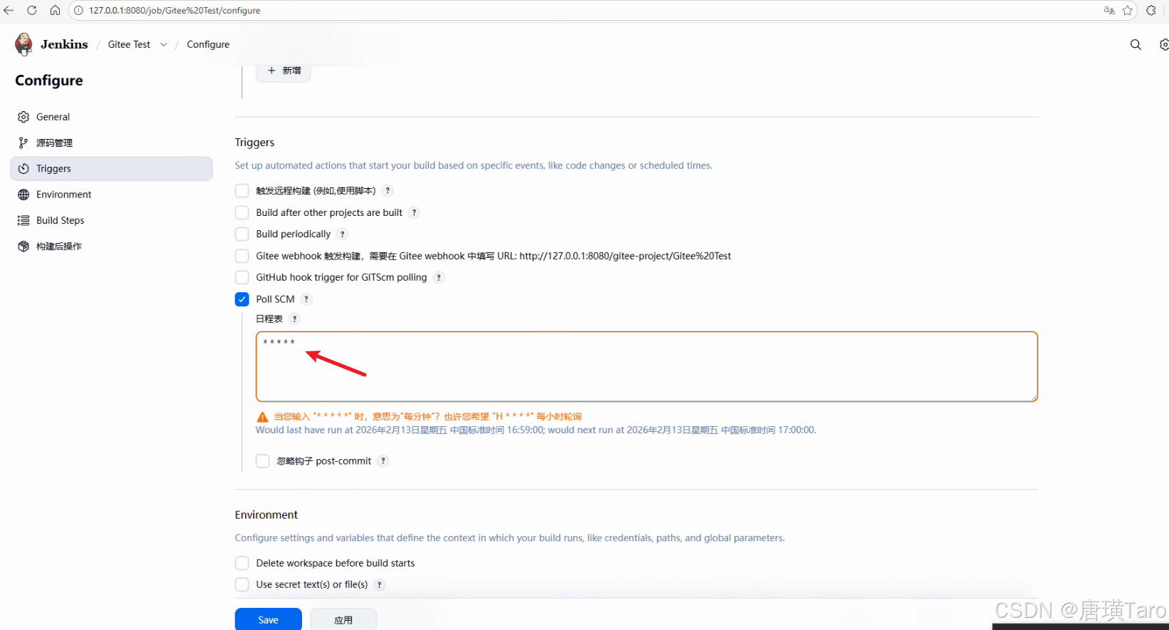 设置日程表为 * * * * *(每分钟检查一次代码更新)。