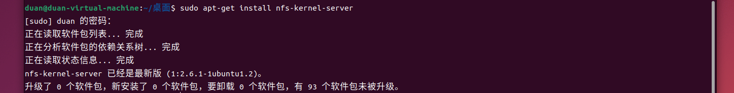 在 Ubuntu 终端执行以下指令安装 NFS 。