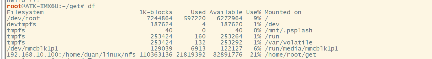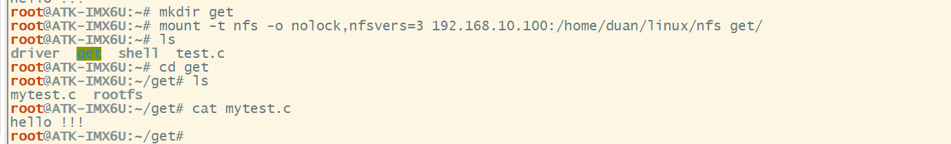 mount -t nfs -o nolock,nfsvers=3 192.168.10.100:/home/duan/linux/nfs get/