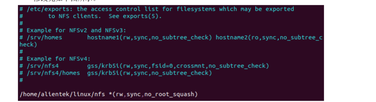 /home/duan/linux/nfs *(rw,sync,no_root_squash)