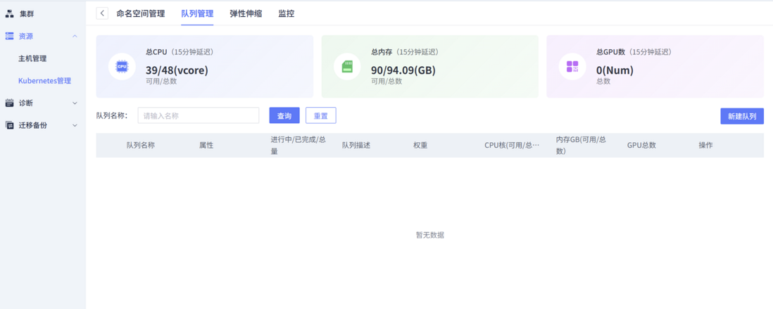 K8s集群队列管理能力:对于K8s集群提供基于队列的管理能力,根据任务的优先级划分不同等级队列,更好的保证资源的利用效率;