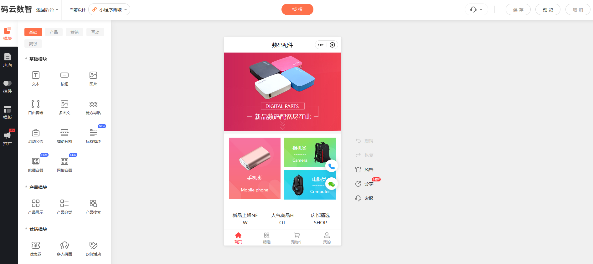 零代码拖拽式操作:2000+行业模板支持一键套用,通过可视化编辑器自由调整页面布局,30分钟内可完成商城搭建,技术门槛极低。