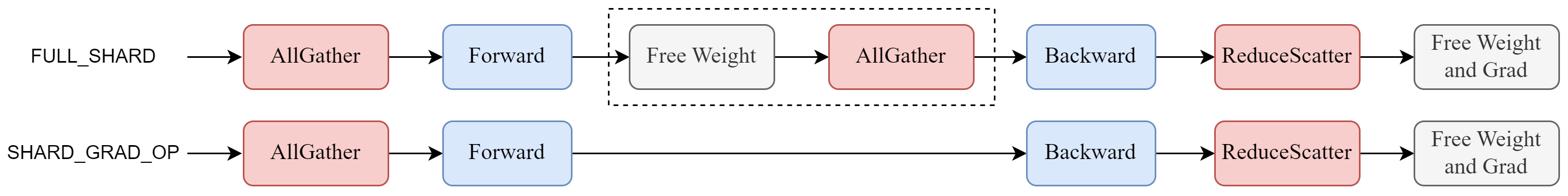 建议:使用FSDP的默认配置就好,也就是forward_prefetch=False, backward_prefetch=BackwardPrefetch.BACKWARD_PRE