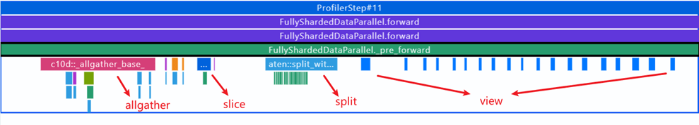 ● 隐式前向预取:依赖于独立CUDA流下发all-gather操作。从 CPU 视角看,可让后续 all-gather 与先下发的前向计算重叠