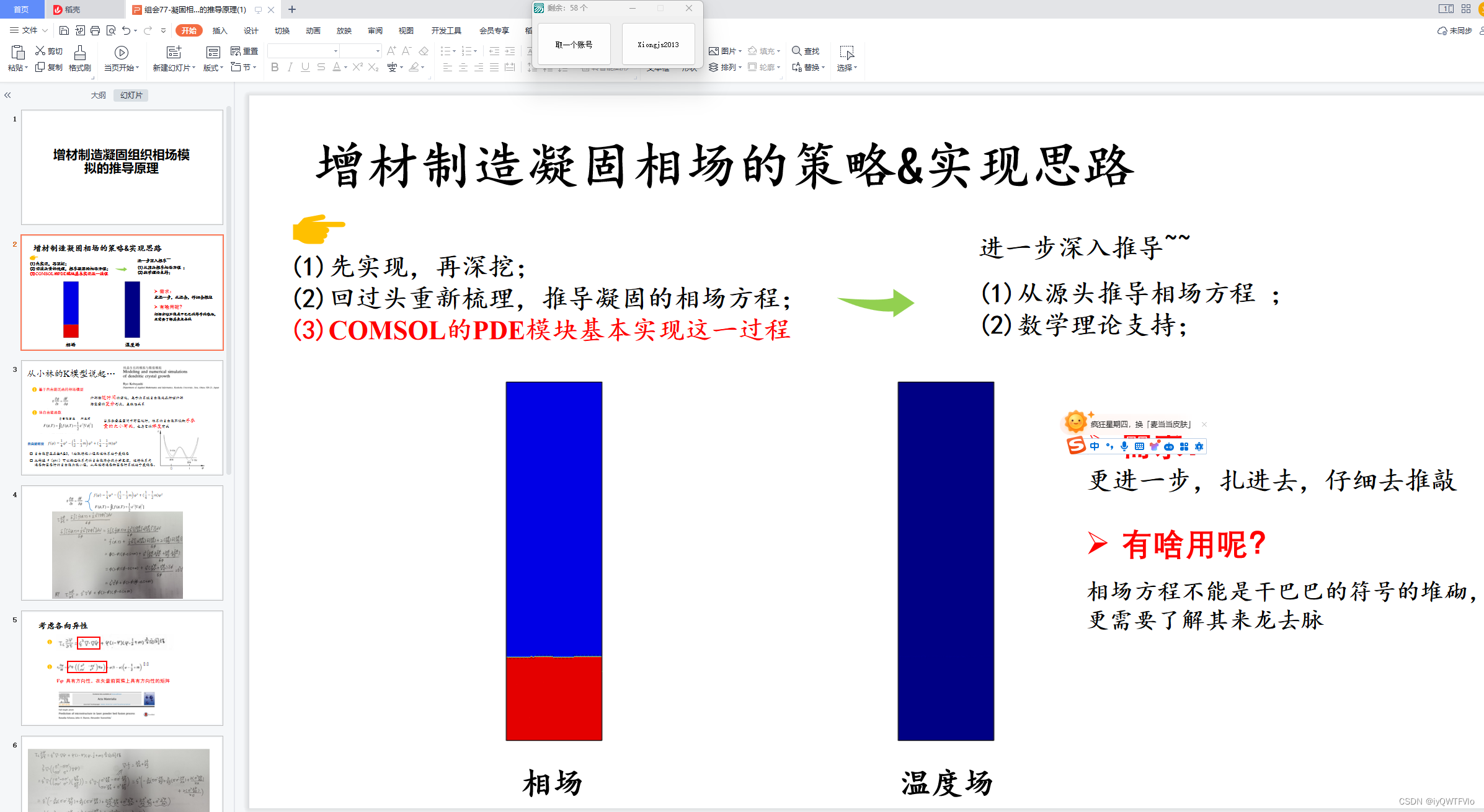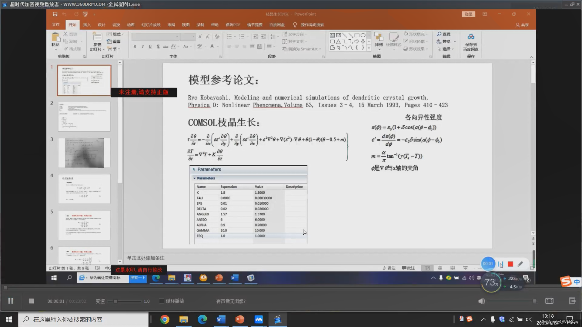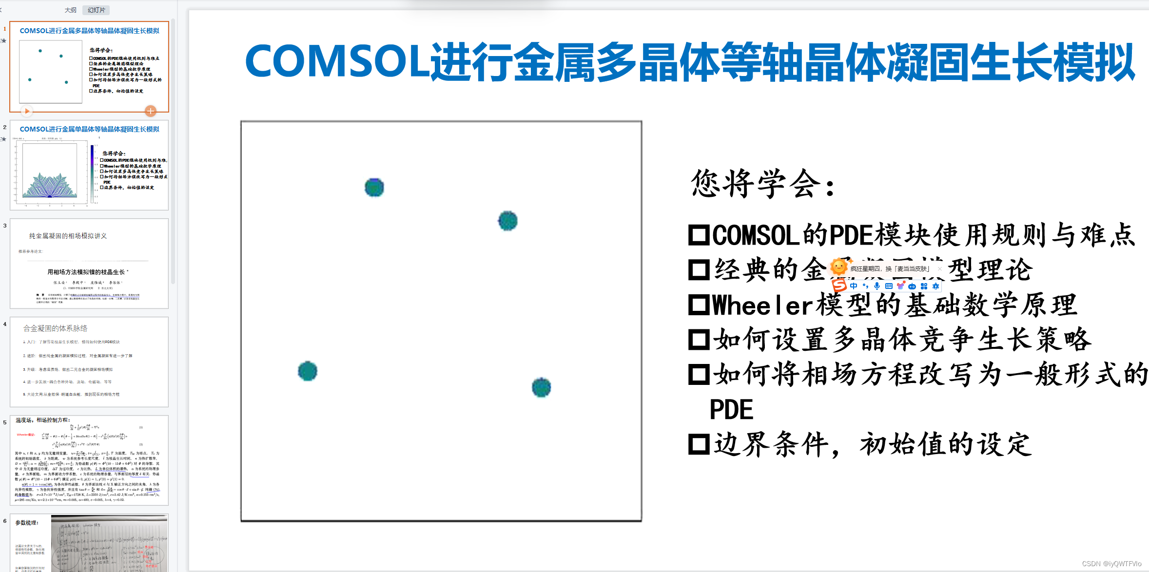 相场模拟------合金,金属凝固模型,各向异性枝晶生长karma 合金凝固模型,选区激光熔融,激光增材制造,选择性激光熔融,SLM,定向凝固,熔铸 1matlab,实现合金各向异性枝晶生长,代码注释详细,包学包会,直接运行得到下面的演化过程,提供相关详细文献资料,包括控制方程,求解方法 2comsol偏微分方程,雪花生长模型,纯金属枝晶生长模型,详细资料