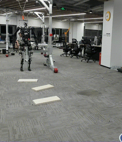 OpenLoong动力学控制模块 - 双足机器人盲踩障碍物仿真