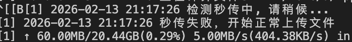 ./kuake-v1.3.6-linux-amd64 upload "file.txt" "/file.txt"上传过程会显示上传进度信息,上传完成后会显示文件上传信息