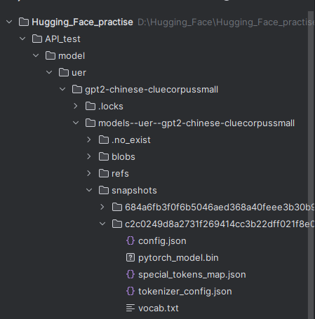 model_dir =r"D:\Hugging_Face\Hugging_Face_practise\API_test\model\uer\gpt2-chinese-cluecorpussmall\models--uer--gpt2-chinese-cluecorpussmall\snapshots\c2c0249d8a2731f269414cc3b22dff021f8e07a3"