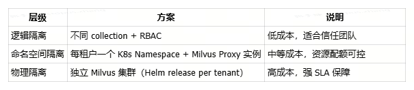 ├── Namespace: milvus-system ← 共享核心组件(RootCoord, QueryNode, S3...)