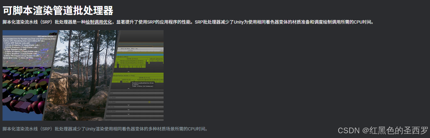 即SRP Batcher不减少DrawCall数量,只是减少准备DrawCall所需的时间,加快每一次DrawCall的提交速度