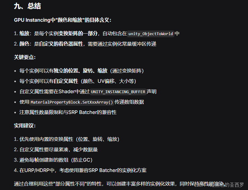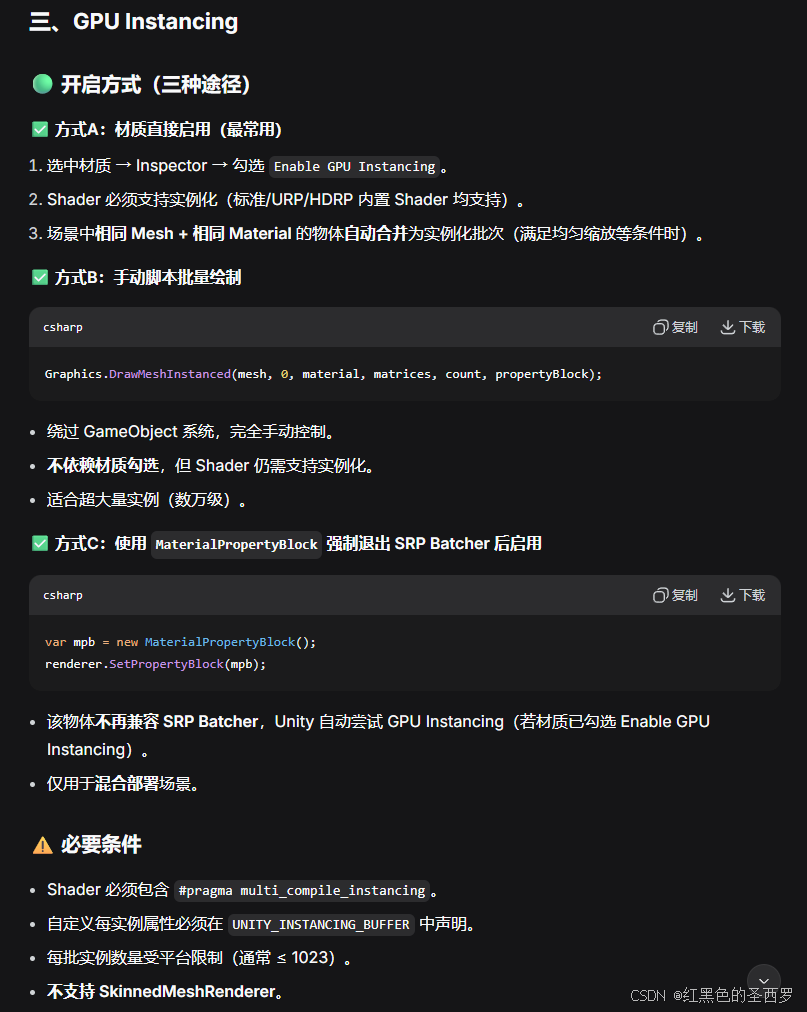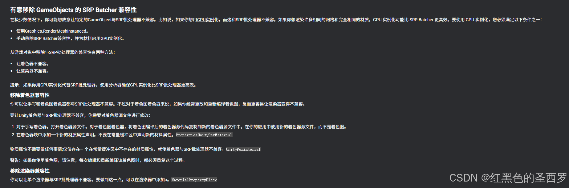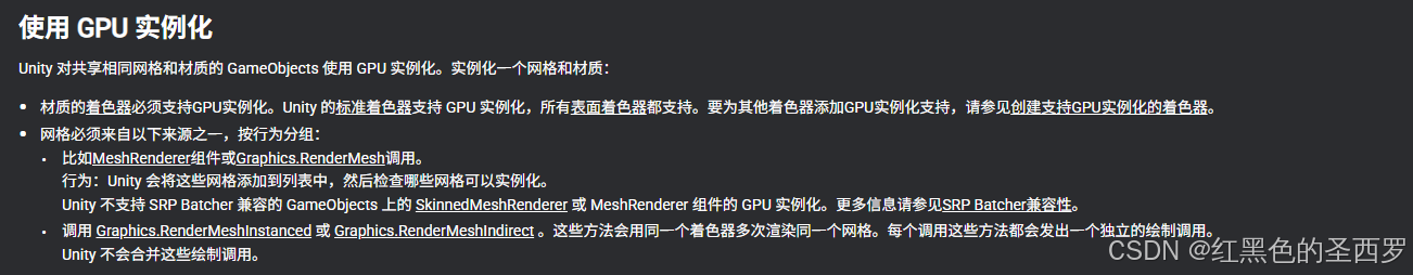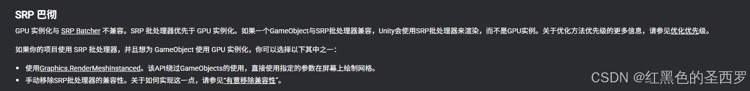 这里也指出了当你实在想用GPU Instancing而不是SRP Batcher时,可以直接用Graphics.RenderMeshInstanced