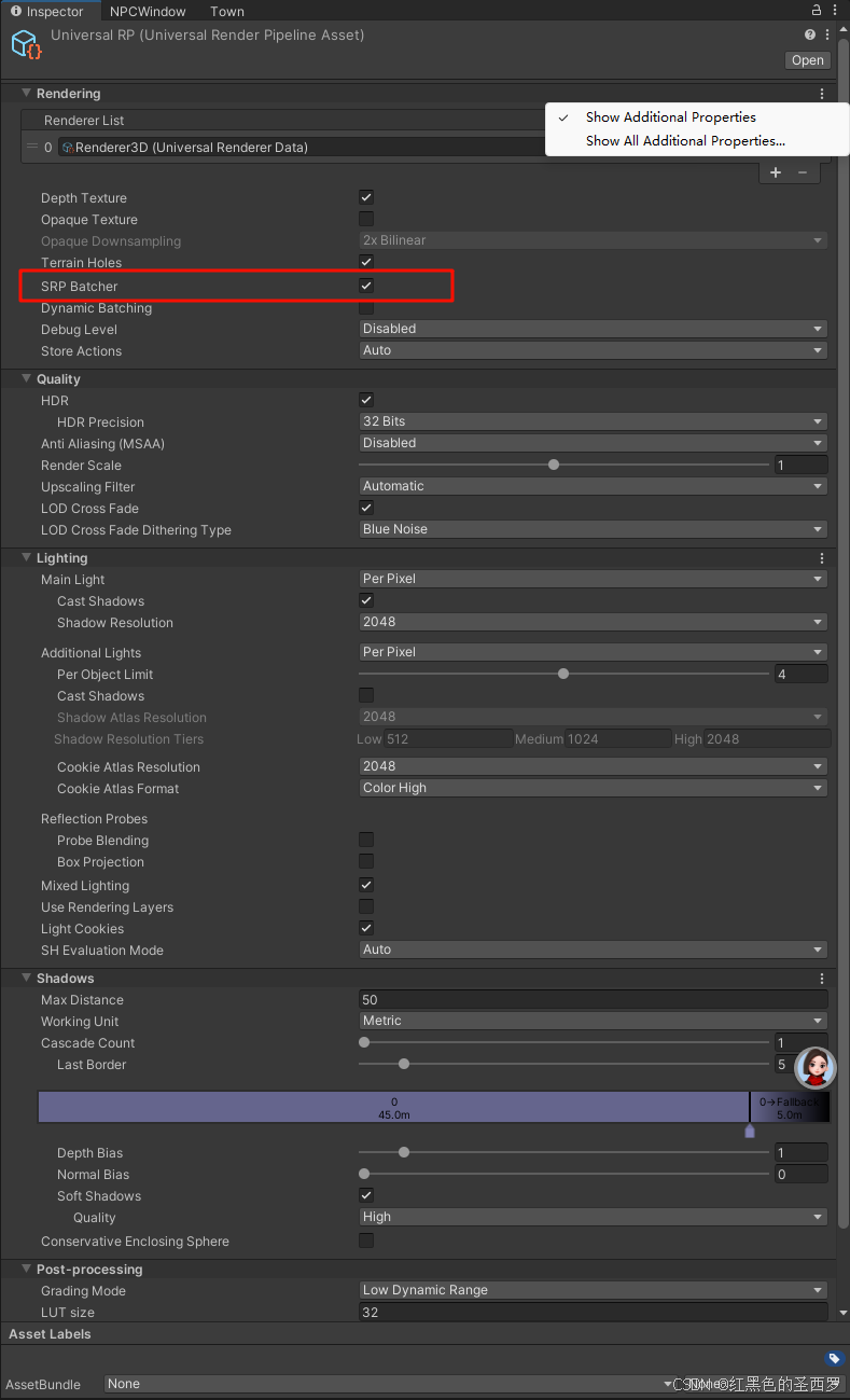 这里的注意点是GPU Instancing和SRP Batcher不兼容,SRP Batcher的优先级会高于GPU Instancing
