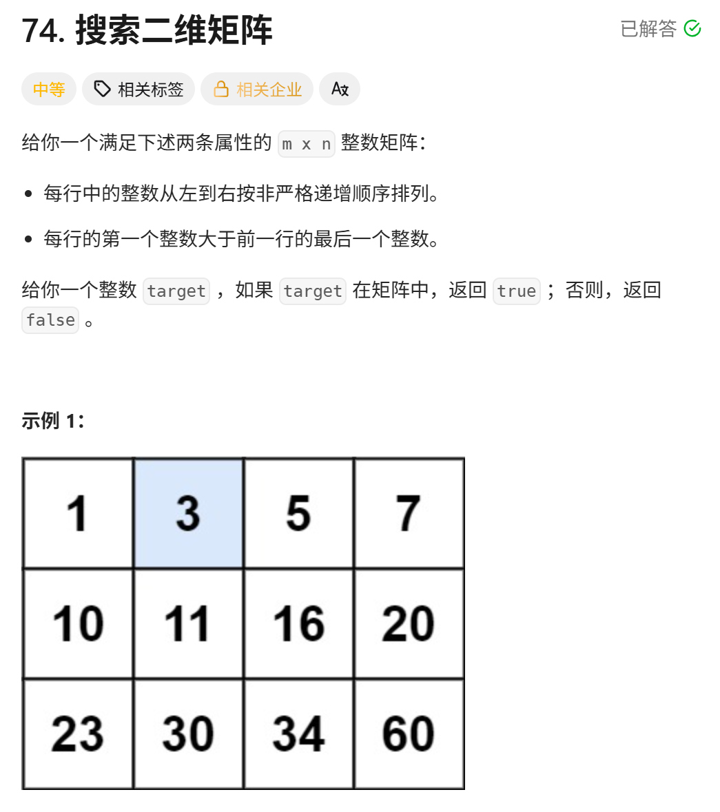 74. 搜索二维矩阵