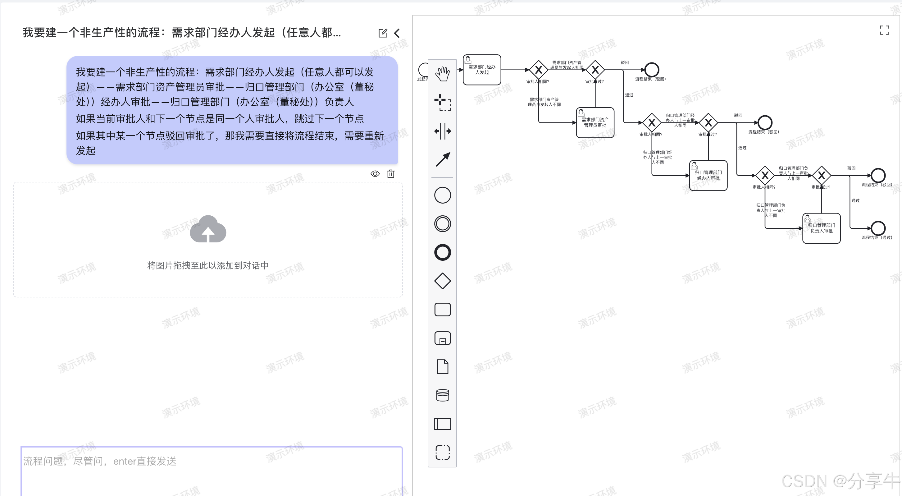 上传图片,根据图片生成标准BPMN2.0效果: