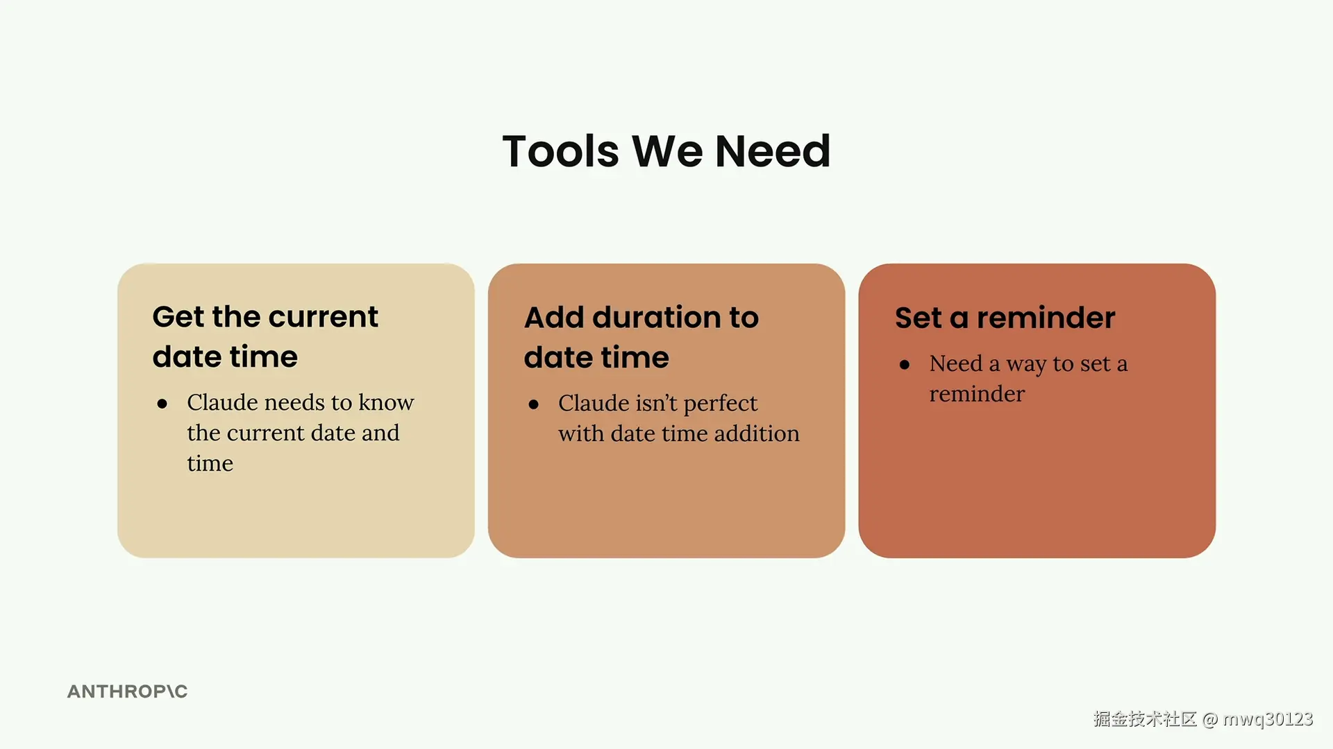 我们将构建一个实用项目,教会 Claude 如何设置未来日期的提醒。这听起来可能很简单,但它揭示了几个有趣的挑战,我们将使用自定义工具来解决这些问题。