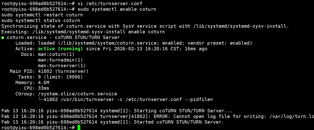 sudo systemctl enable coturn