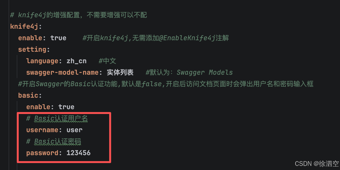 #开启Swagger的Basic认证功能,默认是false,开启后访问文档页面时会弹出用户名和密码输入框