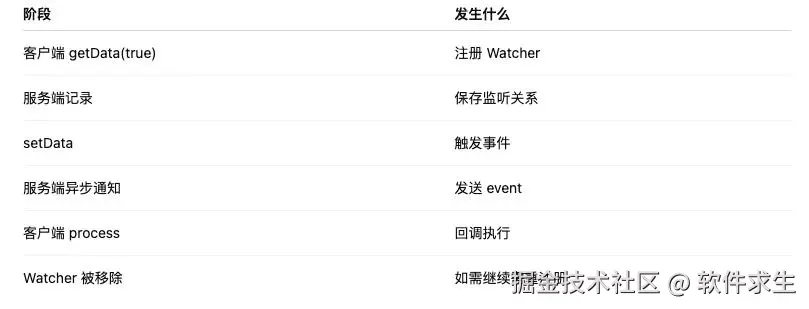 你必须重新 getData 才能拿到数据。这就像:大爷只告诉你:"公告栏变了。",而他不会把公告内容念给你。