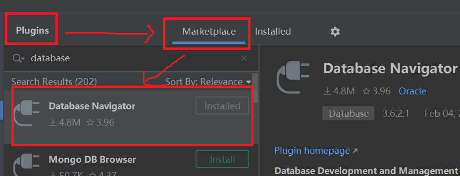 1.下载Database Navigator 插件