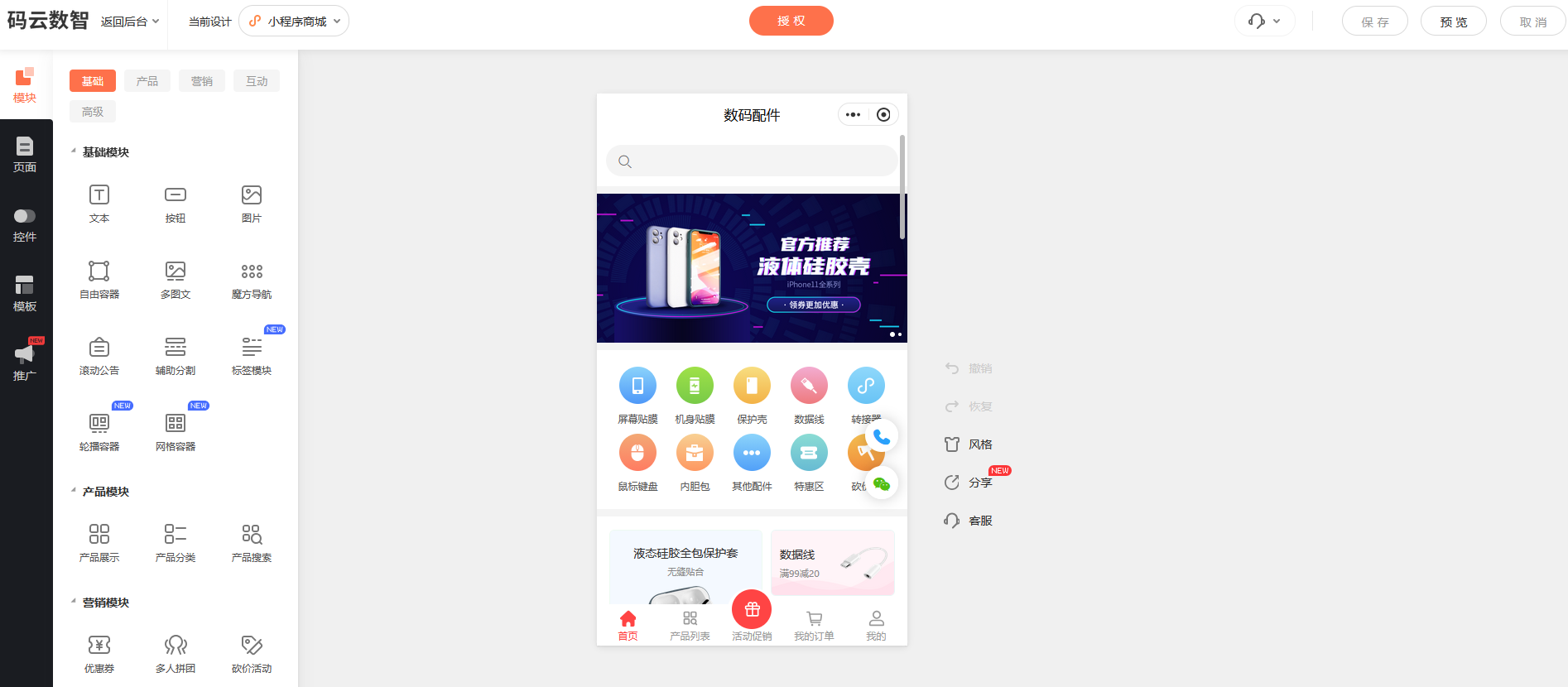 该平台主打零代码拖拽式设计,无需任何技术基础,新手平均4小时即可完成小程序搭建,部分简单模板甚至30分钟就能上手,配合完善的新手引导,真正实现了"零技术门槛"。价格方面,其基础版仅1998元/年,仅为同类头部平台的1/5-1/2,活动期间还推出买2年送2年的优惠,年均成本低至999元,且支持免费试用,无交易佣金,服务器、域名等基础配置全包,彻底降低了中小商家的试错成本和初期投入。功能上,码云数智覆盖商品管理、订单处理、会员管理等基础经营需求,配套拼团、秒杀、砍价等40余种主流营销工具,足以满足中小商家的日常运营场景。
