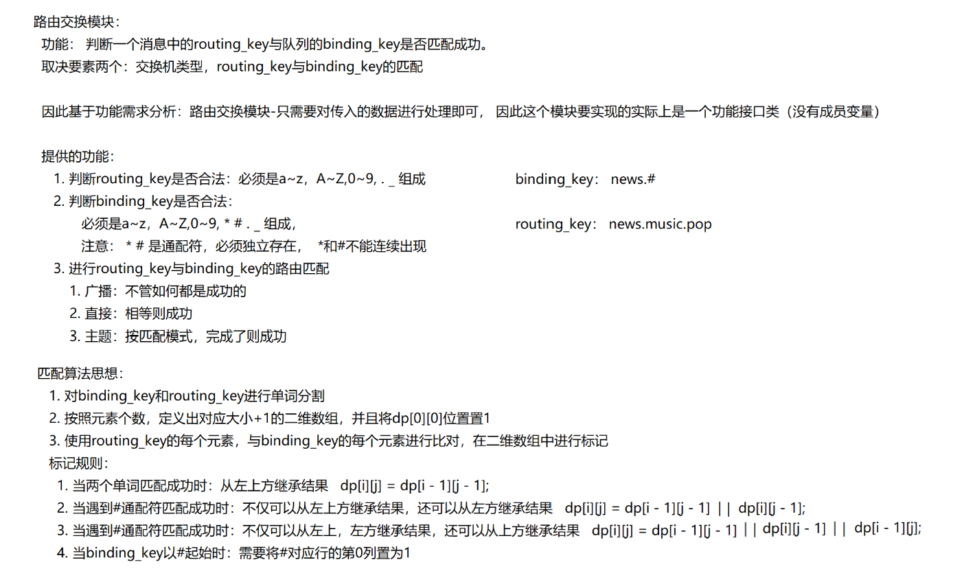 //4. 使用routing_key中的每个单词与binding_key中的每个单词进行匹配并标记数组