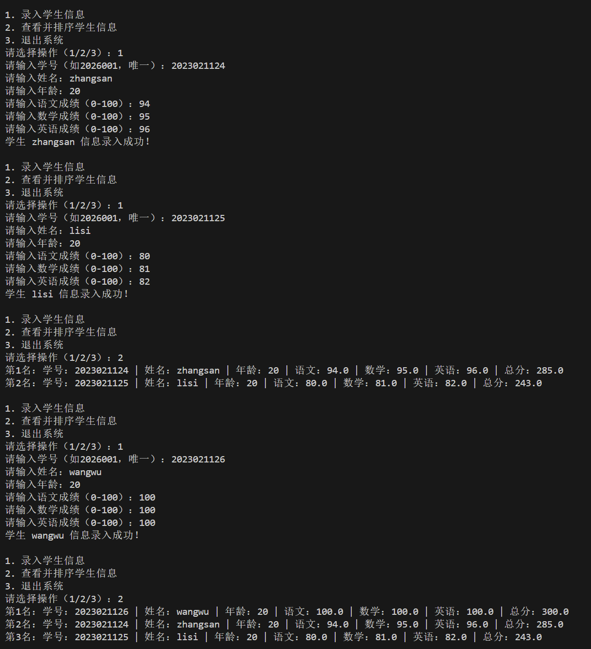 3.使用面向对象编程完成学生信息录入功能,数据存储在本地文件txt中,并读取学生信息并按照成绩进行排序,学生其他属性自行规划